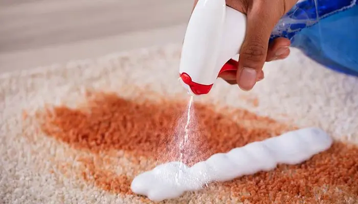 5. **تمیز کردن حلال**: پس از اینکار، با استفاده از دستمال نمدی یا حوله تمیز، حلال اضافی را از فرش جذب کرده و پاک کنید.